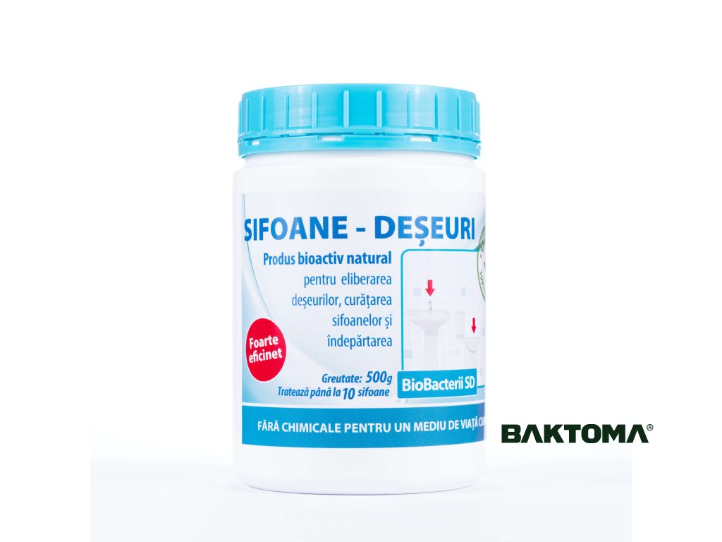 BioBacterii SD este un preparat biologic complet natural, ecologic și extrem de eficient. Este dezvoltat pentru eliberarea și desfundarea de țevi și sifoane înfundate. Odată cu utilizarea sa regulată, mirosul neplăcut emanat de sifoane sau canalizare este eliminat. Folosind periodic produsul BioBacterii SD, întregul sistem de canalizare este îngrijit.