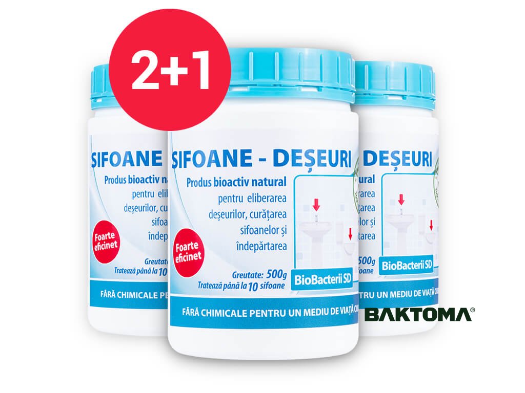 BioBacterii SD este un preparat biologic complet natural, ecologic și extrem de eficient. Este dezvoltat pentru eliberarea și desfundarea de țevi și sifoane înfundate. Odată cu utilizarea sa regulată, mirosul neplăcut emanat de sifoane sau canalizare este eliminat. Folosind periodic produsul BioBacterii SD, întregul sistem de canalizare este îngrijit.