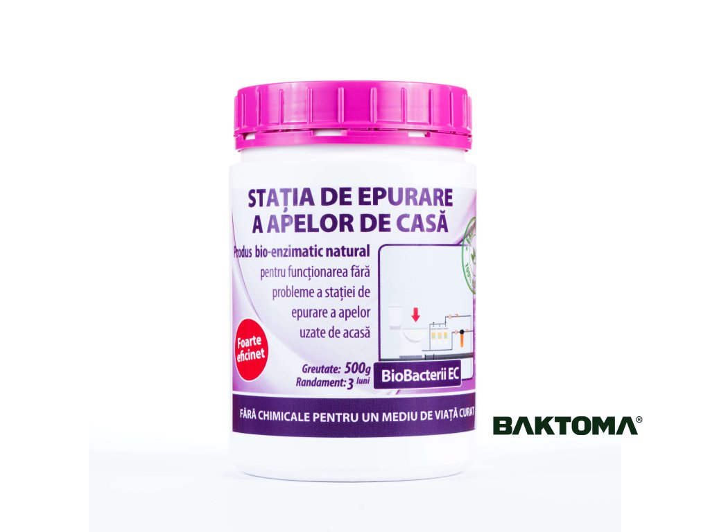 BioBacterii EC este un preparat destinat descompunerii impurităților organice reziduale din stațiile de epurare casnice. Optimizează funcționarea stației de epurare menajeră, prin eliminarea sedimentelor și a depozitelor reziduale, asigurând astfel funcționarea fără probleme a stației de epurare, prevenirea înfundării conductelor și prevenirea formării de mirosuri neplăcute. După utilizarea acestuia reziduurile organice din stația de epurare menajeră se descompun într-un lichid inodor. Produsul este în special important când stația de epurare casnică a apelor uzate menajere îşi atinge capacitatea maximă şi nu mai reuşeşte să facă faţă volumului de ape uzate.